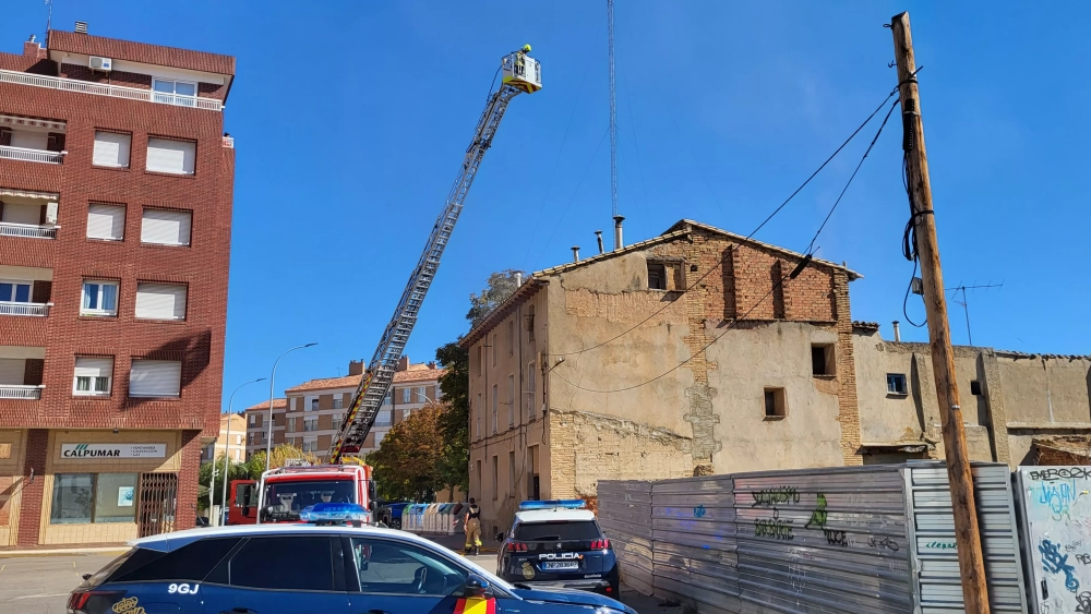Numerosos efectivos de los Bomberos, Policía Nacional, Policía Local y Protección Civil se han desplazado a primera hora de esta tarde para sofocar un incendio declarado en una vivienda okupada en la plaza San Voto número 6 de Huesca. Al parecer, no se han registrado daños personales.