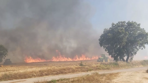 Se ha extendido el fuego por varios campos muy cercanos a explotaciones ganaderas y a dos kilómetros del pueblo. Se han quemado unas 4 hectáreas. El humo ha alertado a los vecinos y se ha podido extinguir con normalidad. Están muy agradecidos al helicóptero que rápidamente ha llegado hasta el lugar y a los agricultores que han dejado sus faenas y han venido con las gradas a arar el campo para que no se propagase. Posteriormente, han venido los agentes de la guardia civil, protección civil y varios camiones de bomberos. Actualmente, hay un retén de 6 personas controlando que no reviva el fuego.