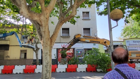 La calle Martínez de Velasco, en el tramo afectado por los trabajos, no se ha cortado al tráfico, que ahora es únicamente de acceso hacia la calle Gil Cavez, y tampoco al tránsito de peatones. La Policía Nacional ha impedido que los transeúntes se quedaran parados en la vía para observar los trabajos, según se ha indicado, por motivos de seguridad.