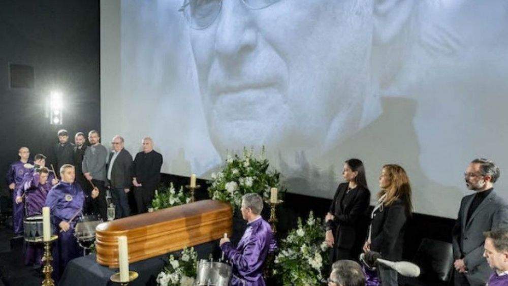 La Academia de Cine ha publicado un amplio artículo en el que recoge los pormenores del acto celebrado. Los restos mortales del director y guionista oscense, fallecido el viernes a los 91 años, llegaron a la Academia a primera hora de la mañana y fueron trasladados hasta la sala de cine de la institución, donde se había levantado la capilla ardiente. El féretro, sin banderas ni símbolos religiosos, quedó instalado en el centro del escenario, rodeado de cinco grandes ramos de flores –en los que dominaban las camelias y hortensias blancas– flanqueados por cuatro candelabros.