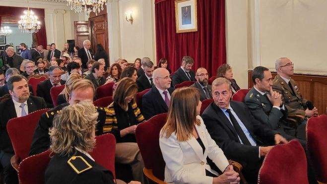 La sede de la Subdelegación del Gobierno ha acogido en esta tradicional cita a representantes de las principales instituciones de la provincia y de la sociedad civil altoaragonesa, entre ellos el alcalde de Huesca, Luis Felipe, la vicepresidenta de la Diputación Provincial de Huesca, Elisa Sancho, la delegada del Gobierno de Aragón en Huesca, Carmen Luesma, el presidente de La Hoya, Jesús Alfaro, diputados y senadores por el Alto Aragón, los responsables en la provincia de las fuerzas y cuerpos de seguridad del Estado, cargos militares y trabajadores de la Subdelegación.