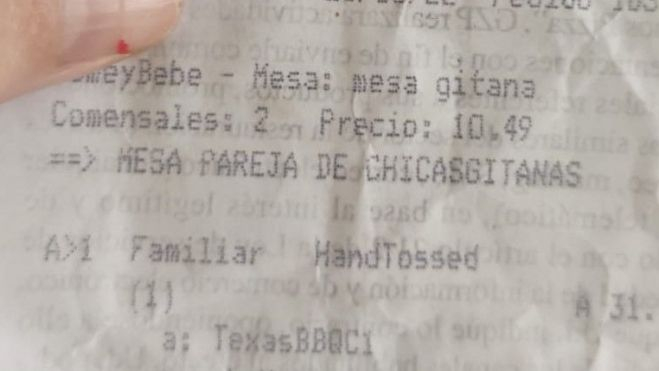 Ha sucedido en Huesca la noche del domingo. A las 21:39 horas, en un establecimiento de una firma multinacional de comida rápida. Lo más probable es que el gerifalte máximo no se entere. Acaso ni siquiera el director general en España. Y hasta el supervisor del local de nuestra ciudad. Eso es lo inquietante. Que pase inadvertida una segregación racial de este tamaño en la España de 2022. El ticket que recibieron las dos consumidoras identificaba el espacio ocupado como "Mesa gitana. Comensales 2. Precio: 10,49". Como si no fuera suficiente, el remate: "Mesa Pareja de Chicas Gitanas".