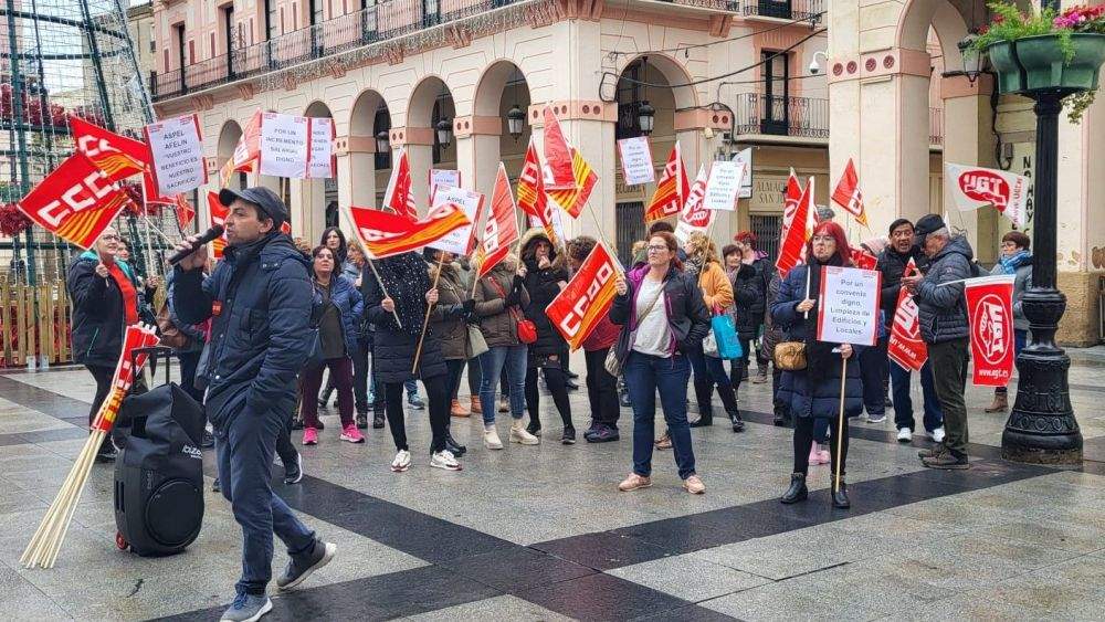 Trabajadoras del sector de Limpieza de Edificios y Locales de la provincia de Huesca se han concentrado este martes ante la sede de Ceos-Cepyme ante el bloqueo de la renovación del convenio colectivo, con el objetivo de dar visibilidad a su situación y reclamar un “cambio radical” en los planteamientos de las patronales.