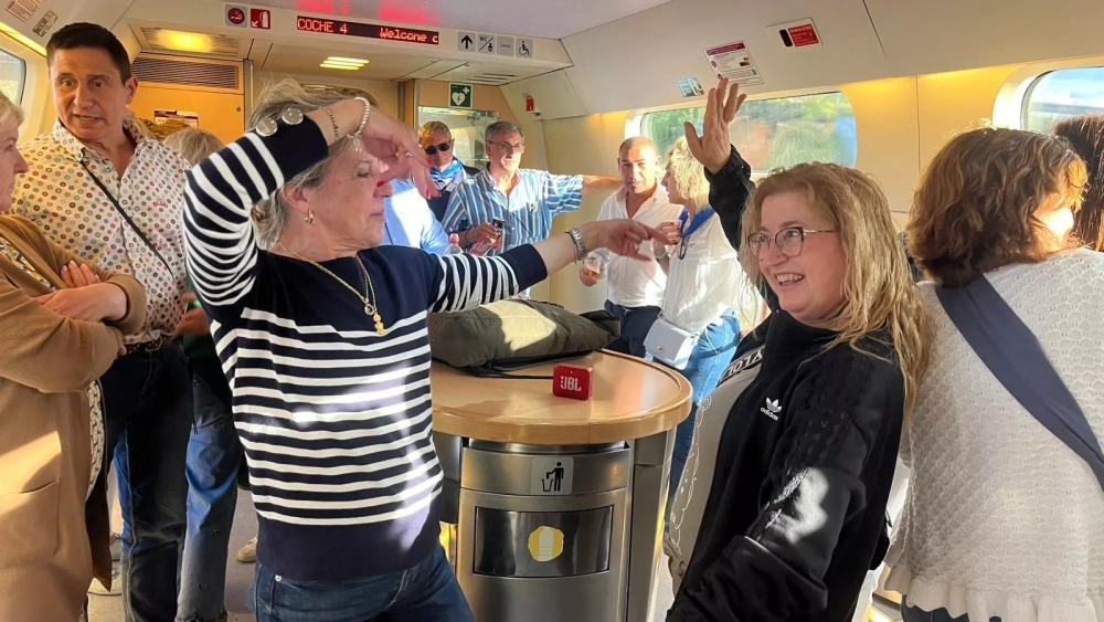 Una demora de hora y media, en el caso de la conexión entre la capital hispalense y la oscense, no viene a ser algo inaudito y, desde luego, no es inédito por la sucesión de incidencias, ora del tren, ora de la infraestructura, por lo que ha habido pasajeros que han decidido tomárselo por la vía festiva y combatir el tedio con alegría.