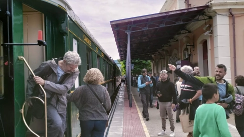 El tren está compuesto por una locomotora de la Serie 316 de los años 50, coches de viajeros de los años 30 y un furgón para bicicletas. En fechas especiales, la experiencia se enriquecerá con la incorporación de vehículos históricos de la Compañía Internacional de Coches Cama, lo que convertirá el viaje en un auténtico salto en el tiempo.