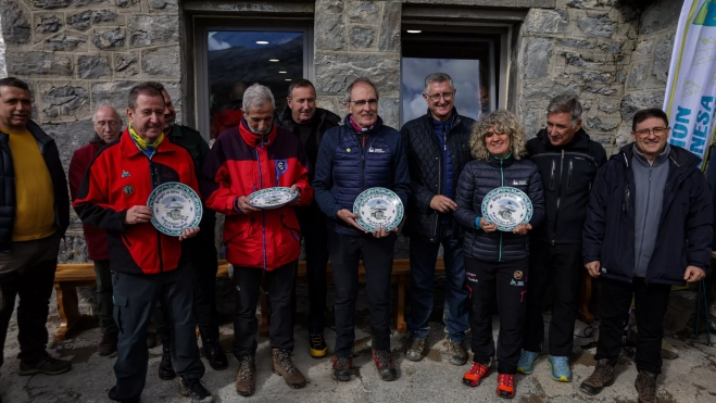 Los promotores de los primeros refugios, los responsables de las obras de Góriz, los guardas que han trabajado desde su inauguración en 1963, los altos cargos y funcionarios de las instituciones públicas que han apoyado en el proceso han recibido sendos platos de recuerdo.