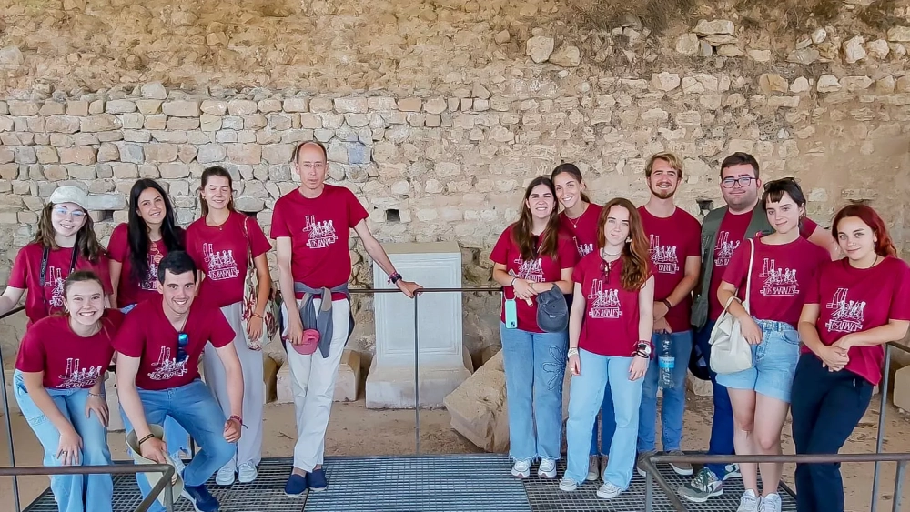 Los estudiantes, acompañados del director científico del proyecto, Javier Andreu, catedrático de Historia Antigua de la Universidad de Navarra, pudieron contemplar en la primera visita a Labitolosa los restos de la curia del foro y los dos complejos termales, que guardan además una notable relación tipológica con las termas romanas que se pueden visitar en Los Bañales.