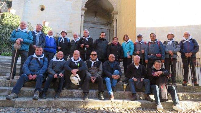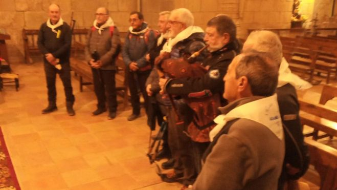 Después de sellar las credenciales al Club, se ha pasado al interior de la Basílica de la Peña, lugar donde el padre Alejo bendijo a los 35 caminantes de Graus y Barbastro. Tras el toque y canto de una albada, la expedición ha iniciado la primera etapa que este miércoles llega hasta Torreciudad previo paso por La Puebla de Castro.