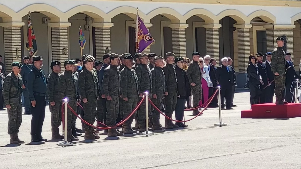 La parada militar presidida por el general de División José Manuel Vivas y protagonizada por la Unidad de Honores dirigida por el capitán Juan Ignacio Olivares en el patio de armas del acuartelamiento ha concluido con el emocionante homenaje a los Caídos por España en el que la voz poderosa del capellán Alberto Catón se ha sobrepuesto al fuerte viento reinante: "El Señor de la vida y la esperanza, fuente de salvación y paz eterna, les otorgue la vida que no acaba, en feliz recompensa por su entrega. ¡Que así sea!".
