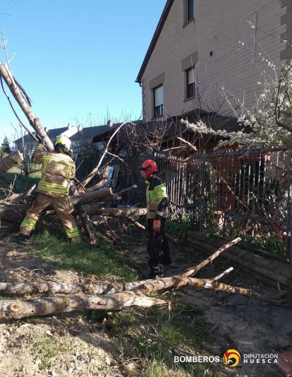 Los bomberos de la Diputación de Huesca han tenido que desalojar cuatro árboles que han derribado las fuertes rachas de viento, de hasta 80 kilómetros por hora en Jaca.