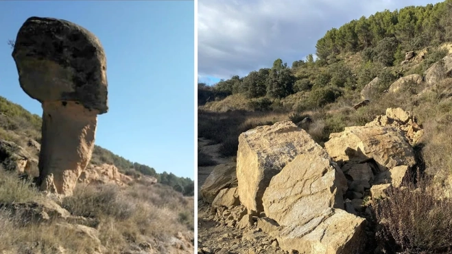 El Vigilante de Fornillos ha sido, durante siglos, una expresión pétrea que saludaba silenciosamente a los caminantes del entorno de la localidad del municipio de Huesca. Ahí estaba, enhiesto, con esas oquedades a modo de ojos que daban la sensación de que todo lo observaba. Era lo más parecido, en medio de un entorno agreste, a un ser humano, con su cuello y su cabeza.