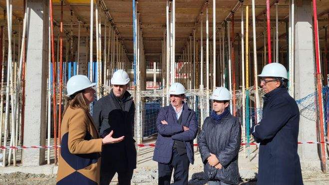 José María Cosculluela, director general de Vitalia Home, ha expuesto este viernes 13 de enero las características de este centro en su visita a la obra, en la calle Manuel Ángel Ferrer, con el alcalde de Huesca, Luis Felipe, quien ha avanzado que en septiembre estará finalizado el edificio municipal que se construye junto a la residencia destinado a usos ciudadanos, principalmente salas de estudios. El presupuesto que destina Vitalia a la construcción de ambos centros es de 9 millones de euros.