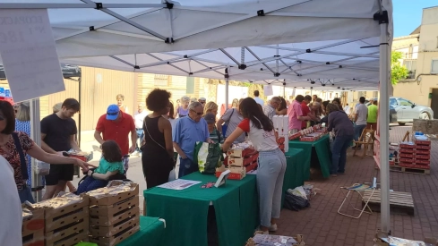 Desbordante. Así define Santiago Pisa, emblemático productor y comerciante de este producto, la Feria de la Cereza de Bolea, que cumple esta calurosa mañana de domingo 25 años de los que se han celebrado 23, con los dos años de carencia de la pandemia.