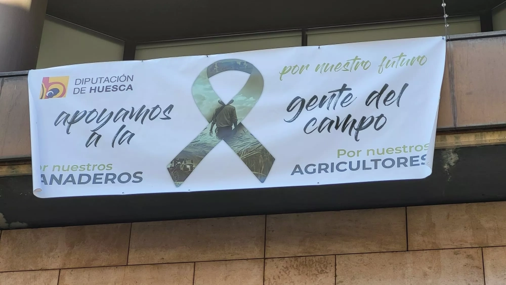 Este miércoles, para simbolizar el respaldo de la corporación provincial, se ha colgado una pancarta en la fachada en la que se afirma que, "por nuestro futuro, apoyamos a la gente del campo. Por nuestros ganaderos. Por nuestros agricultores", todo en torno a un lazo verde en cuyo centro se aprecia la figura de un profesional del campo.