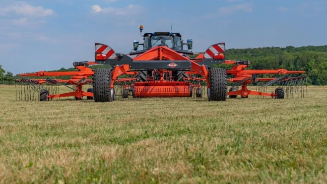 El hilerador de doble rotor GA 8131 CL completa la gama de estos ingenios de descarga central y conserva las propiedades de los demás modelos, al tiempo que ofrece una característica exclusiva adicional al servicio de la calidad del forraje. Diseñado para forrajes verdes destinados a ser ensilados o empacados y para productos secos como la alfalfa, el modelo de Kuhn GA 8131 CL se adapta perfectamente a los distintos tipos de producto.