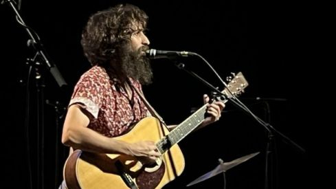 Estaba tenuamente iluminado por unos haces de luz íntimos y delicados muy apropiados para la cita de vis a vis con el cantante, que aprovechó para poner a vibrar toda la sala, donde brilló especialmente su impresionante clase, su estilo sincero, la orfebrería minuciosa del trío entretejiendo notas y ritmo, y sobre todo su manera peculiar de cantar y de recitar que lo convierte en toda una personalidad inconfundible y una referencia en la música contemporánea en español en todo el mundo.