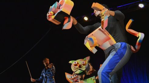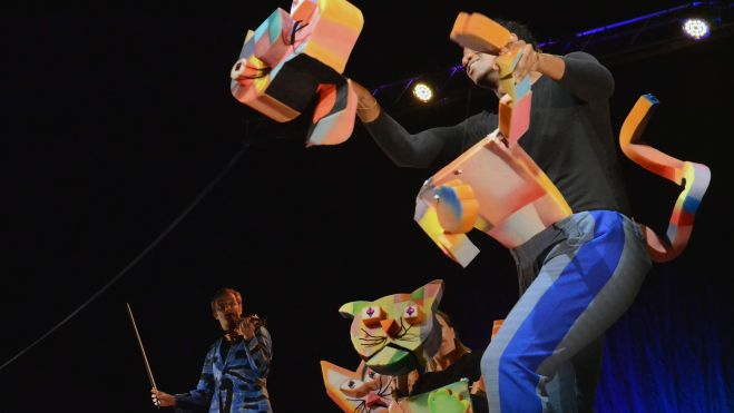 Títeres de material reciclado, pájaros mecánicos gigantes, escenas brillantes de teatro negro... El escenario se renovaba continuamente y la pieza cambiaba de ritmo, de luz y de propuesta al ritmo del violín de Lambrinov. Al final del espectáculo, los intérpretes fueron en busca de su directora, Teia Moner, diseñadora también de la iluminación y de algunos de los objetos, títeres y escenas que conducían la obra. El público les regaló una larga ovación y abandonó el recinto del CDAN, sobre cuya fachada destacaban las sombras de los actores en el escenario para formar parte activa del espectáculo, convencido de que había disfrutado de un privilegio.