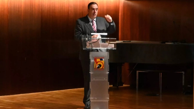 "La Agrupación Folklórica Santa Cecilia es la expresión de esta tierra en toda su bendita amplitud", señaló, y no privó a la audiencia de su habitual sentido del humor. "La Agrupación es como el cobrador del frac. Allá donde está un oscense, está Santa Cecilia. ¿Qué mayeas en la Ermita de Salas? Santa Cecilia, Romario en multifunción y Jara a los mandos. ¿Qué comes en la fiesta de los fontaneros y los electricistas? Jara y sus mariachis. Y Víctor Miranda y Laura Val o Miguel Auseré y su bandurria con los de Palacagüina".