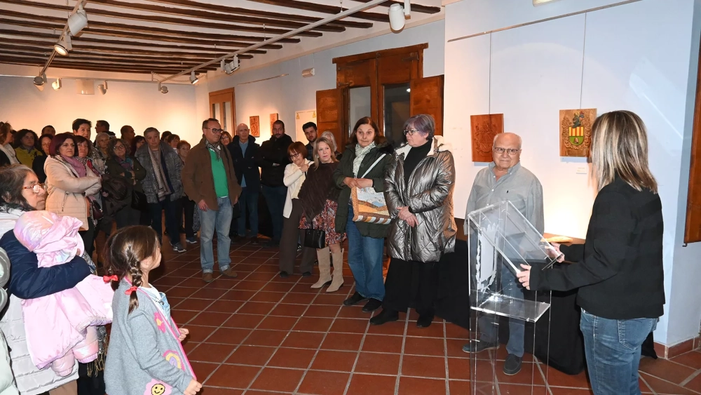 Alberto Escartín, que dos días antes había pasado de septuagenario a octogenario, ha inaugurado este sábado la exposición "Todo sobre talla en madera" en el Museo La Laguna de Sariñena, que permanecerá abierta hasta el 31 de diciembre. Talla para sí mismo y para sus familiares y amigos, no le mueve el lucro sino su realización personal y la amabilidad de agasajar a los más próximos.