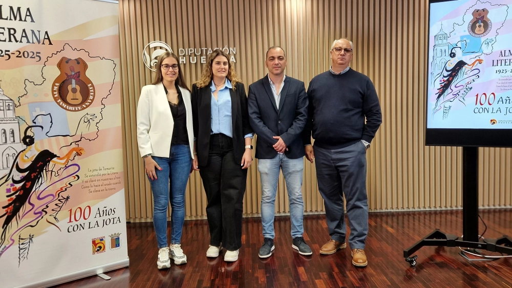 Alma Literana, la primera agrupación folclórica constituida en la provincia de Huesca, celebra su centenario con un completo programa conmemorativo que pone en valor un siglo de dedicación a la difusión y preservación de la jota aragonesa. El acto de presentación de estos actos se ha llevado a cabo este viernes, en la sede de la Diputación Provincial de Huesca, con la participación del diputado de Cultura, Carlos Sampériz, el concejal de Tamarite de Litera Mario Lax y dos integrantes del grupo: las hermanas Alba y Esther Rivera.
