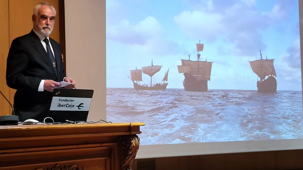 Ha recordado el cuarto centenario del Descubrimiento de América y la figura de Victor Manuel Concás y Palau, a quien llamaron desde Madrid cuando navegaba en la fragata Asturias y se le encargó que se construyese una nao Santa María mientras Estados Unidos se encargaba de una Pinta y una Niña. Se hizo en un año "en un acto improvisado, pero el barco español navegó desde Palos de la Frontera, a Canarias, de Canarias a San Juan de Puerto Rico y hasta Chicago, a la Exposición Universal de Chicago y ahí se destruyó por un incendio". La Pinta y la Niña no pudieron navegar. Fue seis años antes de la guerra hispanoamericana.