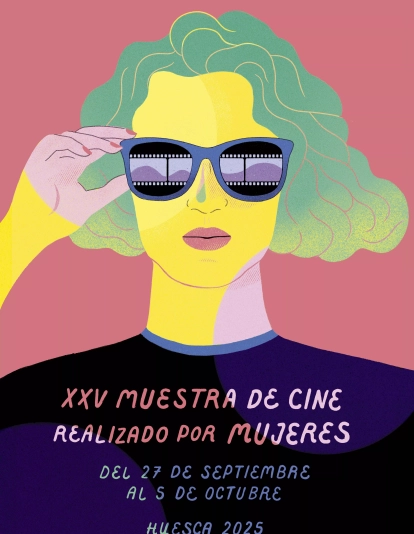 Con esta imagen, la Muestra de Cine Realizado por Mujeres de Huesca celebra un cuarto de siglo de historia, con un cartel que es celebración, manifiesto e invitación a mirar el cine con otra perspectiva.