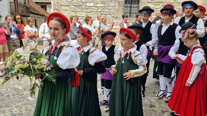 La jornada continuará a las 12.30 con la misa cantada por la Coral Ansotana y, posteriormente, el Baile del Alacay en la Plaza de la Fuente. A las 14.30 se realizará la comida para invitados y participantes en la plaza de toros. La actividad concluirá con el espectáculo de jota Sentidos, a cargo de la compañía de Roberto Ciria, que se inicia a las 17.00.