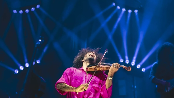 Ara Malikian ha firmado esta noche su tercera visita a Pirineos Sur (la primera fue en 2015 y la segunda en 2022) con el mismo resultado que siempre: un derroche de virtuosismo, una presencia escénica arrolladora y una exultante respuesta de los asistentes. En esta ocasión, el músico libanés regresó a Lanuza para presentar su nuevo trabajo, “Intruso”, toda una declaración artística que aborda asuntos como la pertenencia, la búsqueda de la identidad y la necesidad de tender puentes entre las diferentes sociedades: muchos de los temas que siempre ha abordado este festival.