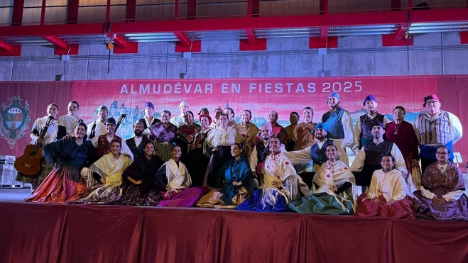 Uno de los momentos más solemnes fue el homenaje a Javier Abad, Irene Sanagustín y Alejandro Escuer, recientemente nombrados académicos de honor 2025 de la Academia de la Jota Aragonesa por su aportación al mundo del folclore. En la foto conmemorativa no faltaron la alcaldesa de Almudévar, Sofía Avellanas, y el concejal de cultura, Fernando Martínez, cuya presencia reforzó la dimensión institucional del acto.