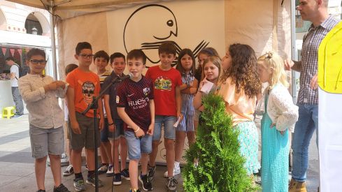 Escolares de 4º B del colegio Pedro J. Rubio de Huesca han sido protagonistas en la mañana de este sábado en la Feria del Libro con la presentación de su cuento infantil “Panchito Culo Plano”, en un acto organizado por las Bibliotecas Municipales de Huesca, que ha llenado la zona de presentaciones del certamen.