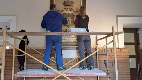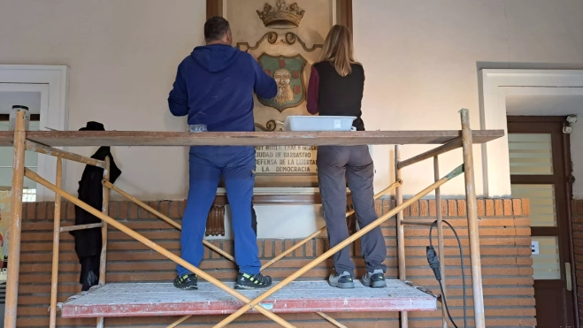 Barbastro ha iniciado la restauración del escudo del vestíbulo del edificio institucional del consistorio, que data de mediados del siglo XX. De los trabajos se encarga la restauradora Eva Cabrero, que ha desarrollado actuaicones para el Museo Diocesano de Barbastro-Monzón y el Museo de los Mártires Claretianos. La restauración está presupuestada en 925 euros.