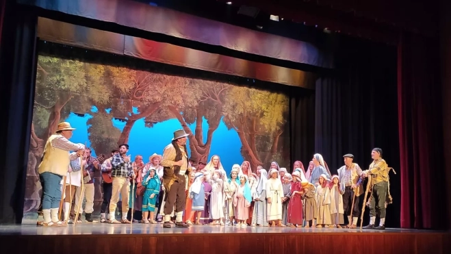 El Teatro ha estado repleto en el patio de butacas y también con público en el gallinero. Esos 4,50 euros de precio de taquilla son una barrera fácilmente superable teniendo en cuenta que la oferta es extraordinaria. Los setenta actores largos han lucido por sus propias cualidades interpretativas y por la contribución impagable de técnicos, maquilladores, voluntarios y responsables de vestuario.