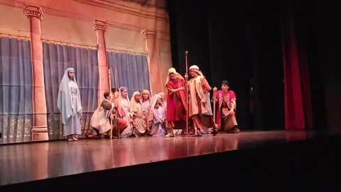 Los alumnos de 3º y 4º de Primaria se han ocupado de sus papeles de diablillos y los de 5º a 4º de Secundaria se han hecho cargo de los personajes, todo un catálogo de los oficios de los tiempos de Cristo. Hora y tres cuartos de diversión con su moraleja propia, con esos dos pastores tan ingenuos e ingeniosos como Josuel y Patatán capaces de imponer las herramientas del bien frente a las tropelías de Botero y Cuernitos, empecinados en su misión de evitar que los primeros alcancen Belén para empadronarse.