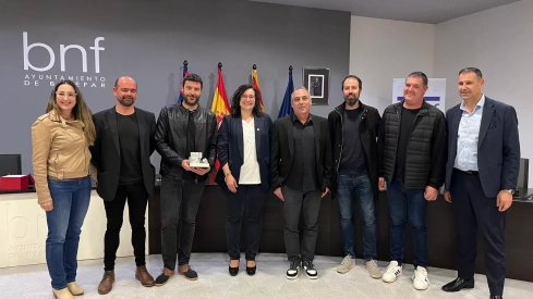 La alcaldesa, Patricia Rivera, ha entregado a los músicos una escultura metálica que reproduce la Casa Consistorial como símbolo del reconocimiento del municipio, y ha felicitado al grupo por llevar el nombre de Binéfar por tantos escenarios, y hacerlo con tanta brillantez.