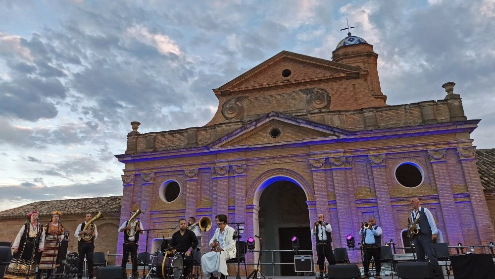 La Cartuja de Nuestra Señora de las Fuentes de Sariñena vivió anoche una de esas veladas para el recuerdo. Entre los viejos muros del monasterio, destinado hace siglos al silencio y recogimiento, irrumpió con toda su energía la música desbordante de Goran Bregović y su célebre Orquesta de Bodas y Funerales, que puso a bailar al millar de personas congregadas para vivir la penúltima cita de la sexta edición del Festival Sonidos en la Naturaleza, Sonna Huesca, que organiza la Diputación Provincial de Huesca.