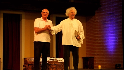 Una noche especialísima, con el aforo abarrotado (cerca de 400 localidades) con motivo de un acontecimiento en el que El Brujo convirtió el Corral de Comedias de Robres en el templo del teatro del norte de España. Luis Casáus explica que está siendo "una sucesión de emociones continua". Descubrió a Rafael Álvarez el 3 de mayo de 1990, hace 34 años, en una feria de teatro en Huesca en la que representó El Lazarillo en Salesianos, una semana después de que estrenara en Salamanca.