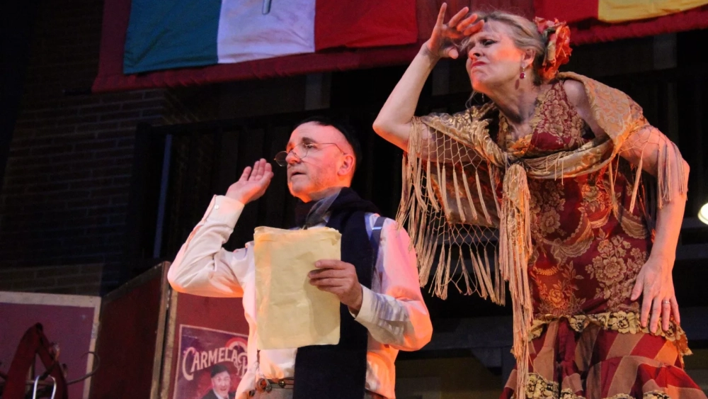 Carmela y Paulino cantan, bailan e interactúan con un teniente italiano que supervisa el evento. Tratan de sobreponerse a los escasos medios escénicos con simpatía y determinación, alternando sonrisas con comentarios sarcásticos dirigidos el uno al otro, siempre bajo la presión de la guerra. Laura Plano y Luis Rabanaque sostienen la función con solvencia, transitando con precisión por esa frontera difusa entre el humor y el drama.