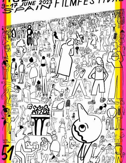 El 51º Festival Internacional de Cine de Huesca da sus primeros pasos con la presentación de su imagen oficial y la apertura del proceso de inscripción de cortometrajes. La cita que se celebrará del 9 al 17 de junio contará con un cartel diseñado por el prestigioso estudio ‘It’s Raining Elephants’ formado por las artistas suizas Nina Wehrle y Evelyne Laube, una obra cargada de “energía positiva y vibrante” como ellas mismas la describen. “Surgió de un impulso en un juego de dibujo… queríamos hacer una imagen ambivalente e icónica” afirman sus autoras, dos creadoras que buscaban despertar la curiosidad y generar preguntas en el espectador: “¿Es una proyección de cine, una fiesta o una manifestación? ¿Qué miran esas personas? ¿Qué esperan? ¿Están realmente allí?”, concluyen.