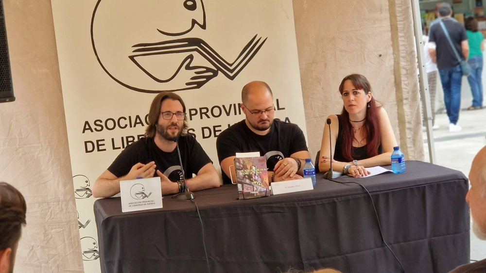 Alejandro Marín y Borja Alonso, acompañados por Lucía Gracia, han presentado en la 41 Feria del Libro de Huesca La ceguera de Zyra, un ambicioso ejercicio de fantaciencia especulativa escrito a ocho manos junto a Carlos Calleja y Fran Montero, y publicado por la editorial Numak.