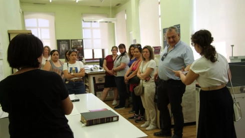 Continuando con la visita, los participantes son conducidos a la sala de investigadores, de donde pasarán a visitar los depósitos de documentos e interesarse por las condiciones de conservación y climatización, así como por los sistemas de seguridad, aspectos que son tratados con más profundidad en el laboratorio de restauración.