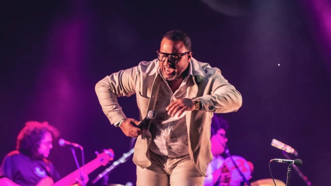 El ambiente ya había entrado en calor con la actuación de Goxua’n Salsa. La orquesta colombiano-navarra interpretó en euskera salsa clásica inspirada en las décadas de los 60, 70 y 80 de Nueva York, Colombia y Puerto Rico. Y nada más sonar una introducción y comenzar el show con “Valor de uso”, las primeras filas comenzaron a bailar al son de la banda.