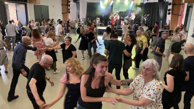 Bailarines de varios puntos de Aragón y Cataluña han tomado este sábado el Espazio Cultural L’Urmo de Fonz convertido en una pista de baile de lindy-hop en la IX Trobada de Swing, organizada por el Ayuntamiento en colaboración con la Diputación Provincial de Huesca (DPH). La cita se ha consolidado como una referencia del lindy hop y del swing dentro del circuito provincial Alto Aragón Jazz Tour, que promueve la DPH, sobre todo para los amantes de jazz más lúdico.
