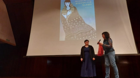 La autora del cartel cuya autoría e imagen han sido desveladas en el salón de actos de la Diputación Provincial, que ha descubierto el atractivo cartel visiblemente emocionada, ha afirmado que ha rendido tributo "a las pioneras del cine español, que eran muy pocas y que hicieron una proeza, un par de pequeñas películas que no llegaron hasta nuestros días porque desgraciadamente muchas de esas de esa época han desaparecido, pero es un homenaje a las Elenas: Elena Jordi, Helena Cortesina y Rosario Pi".