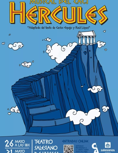 "Y en la mala racha acuérdate de que en tu alma está el poder". El Club de Amigos Centro Juvenil de Salesianos Huesca se ha vuelto a liar la manta a la cabeza, en el mejor de los sentidos, para interpretar el musical "Hércules", inspirado en la producción de Disney y adaptado del texto de Carlos Espejo y Raúl López. Este domingo y el viernes 31 de mayo, el Teatro Salesiano acogerá a cientos de espectadores para disfrutar de un espectáculo con sentido y profundidad.