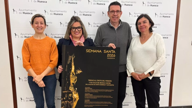El Ayuntamiento de Huesca ha acogido la presentación del XII Ciclo de Música Sacra de la Cofradía del Santo Cristo del Perdón, una cita ya consolidada dentro de la programación cultural vinculada a la Semana Santa oscense y que se celebrará en la Iglesia de Santo Domingo y San Martín del 28 de marzo al 31 de marzo.
