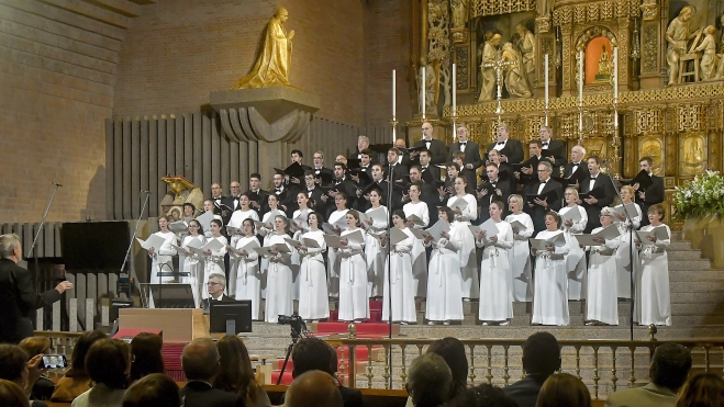 La conmemoración del 50 aniversaruio de la apertura al culto del nuevo templo dedicado a la Virgen de Torreciudad celebró este pasado sábado uno de los principales y más esperados actos. El Orfeón Donostiarra, una de las formaciones corales más prestigiosas de Europa, ofreció un concierto en el que la reconocida excelencia de esta agrupación brilló con toda su calidad artística.