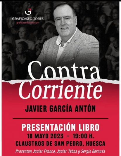Con toda la simbología del Claustro de San Pedro el Viejo, junto al Panteón Real en la Capilla de San Bartolomé, se presenta a las 19:00 horas de este jueves el libro "Contracorriente", de Javier García Antón, con la participación de tres amigos del autor: Javier Tebas, presidente de la Liga de Fútbol Profesional, Sergio Bernués, escritor, consultor, formador y conferenciante, y Javier Franco, gerente de Gráficas Editores, la editorial que ha hecho un trabajo magnífico y enormemente profesional para que la publicación llegue con un aspecto realmente vistoso a las manos de los lectores.