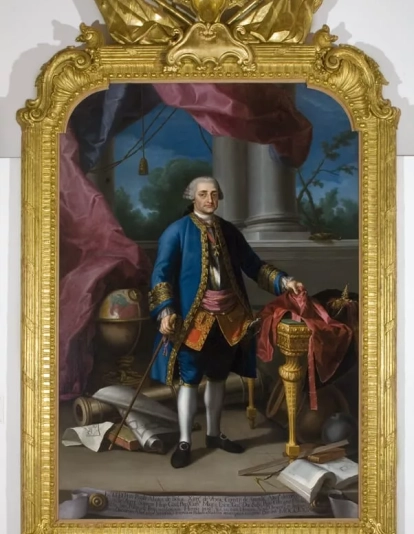 Nos parece que la sintonía de ambos personajes bebe de un mismo fondo ilustrado y progresista y nos atrevemos a proponer como piedra angular el Conde de Aranda. El Conde, primer ministro de Carlos III, había patrocinado a Jovellanos como Alcalde del Crimen de Sevilla [1767], al tiempo que era nombrado doctor honorífico por la Universidad Sertoriana [1769]. El retrato del Conde con la borla de Doctor inaugura el programa pictórico del Paraninfo oscense cuando estudiaba Lasauca.