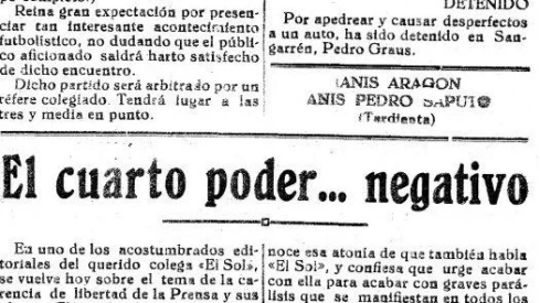 En octubre de 1924 “El Diario de Huesca” se hacía eco de un editorial de su colega “El Sol” titulando “El Cuarto poder… negativo” aludiendo que si en España la prensa era más “poder” que en ningún otro país, precisamente por la ausencia de opinión pública. Explicaba que ahora, sometidos los periódicos a esta rígida previa censura, este cuarto poder se había trocado en negativo. Lamentaba además este informativo oscense que, a la atonía universal de la opinión, se sumaba la atonía de la prensa.