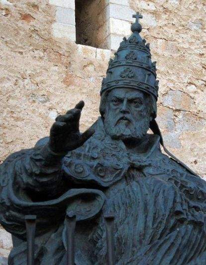 En un tiempo del siglo XIV e inicios del XV de guerras, reconquistas, disturbios urbanos, el fin del feudalismo, auge de las ciudades que salen de las grandes pandemias, como la Peste Negra que acabó con un tercio de la población, tenemos que enmarcar la figura de Pedro Martinez de Luna, ese aragonés nacido en Illueca en1328 en el seno de una familia noble, que dejó las armas para formar parte de la Iglesia, pero esta institución que eligió se estaba resquebrajando por un conflicto Iglesia y Estado entre el rey francés Felipe V el Hermoso y el papa Bonifacio VII, que acabaría con el pontífice arrestado en Anagni y por parte del rey francés la imposición de Clemente V, quien trasladaría la Santa Sede de Roma a Aviñón. Comenzando la grave crisis que con la muerte del papa Gregorio X se activaría al reunirse en Roma los cardenales italianos y elegir papa a Urbano VI, pero en un cónclave rechazado al faltar los cardenales de Aviñón que declararían nula la elección, dando de esta forma origen a un cisma de cuarenta años, con el nombramiento de Clemente VII que buscaría el apoyo de Pedro Martinez de Luna, quien creía oportuno unir al catolicismo mediante la abdicación de los dos papas en disputa, pero este proyecto era rechazado por Clemente VII. A su muerte, con 20 sufragios de los 21 cardenales, Martinez de Luna fue elegido pontífice con el nombre de Benedicto XIII. Comenzaba una nueva fase de crisis para la Iglesia, en la que Pedro de Luna no se rindió y como buen aragonés hizo que se acuñara la famosa frase de “mantenerse en sus trece”, pues consideraba que era el único pontífice elegido papa por cardenales anteriores al Cisma de Occidente y en esa legitimidad persistió, mientras ganaba la estima general, con diócesis contrarias a Roma como Tournai, Lieja, Ultrecht, y hasta Alemania, Hungría y Polonia, al igual que en Italia, Savona, Albenga, Génova y toda Liguria que pasan a su obediencia.